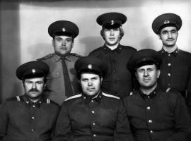 Отличное отделение 1 караула 1 самостоятельной военизированной пожарной части г. Краснодара по итогам работы за 1977 год. На фотографии сделанной в 1977 году в фотоателье на улице Карла Либнехта: Кулинич Валерий Васильевич, старший пожарный; Комаров Иван Иванович, водитель; Ященко Александр Павлович, командир отделения; Золотоус Александр Павлович, пожарный; Евтушенко Михаил Николаевич, старший пожарный; Керимов Жамиль Кемалович, пожарный.