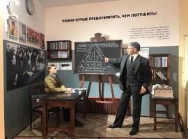 В концепцию музея помимо традиционных приемов входит так называемый прием - «музей-театр». Достигается он посредством использования исторического моделирования и реконструкции т.е. создание с той или иной степенью достоверности исторических моделей, ситуаций, событий, действий, а также предметов материальной культуры — зданий, сооружений, предметов быта и облика людей. Атмосферу периода помогают почувствовать ростовые куклы, прототипами которых, послужили реальные личности: профессор Ленинградского пожарного техникума В.А. Эллисон, и студент техникума Ф.Л. Логинов, который возглавил в годы войны один из боевых расчетов, тушивших пожары в блокадном городе.