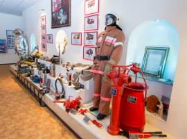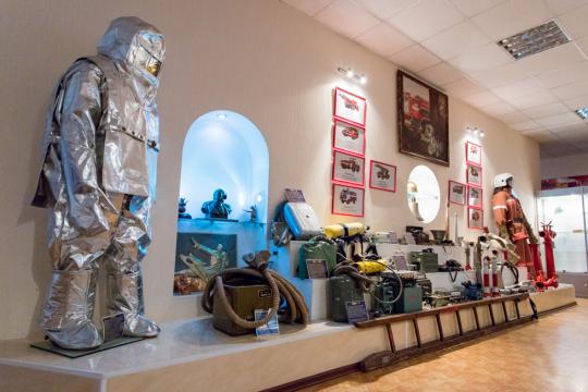 Это макеты депо, оборудование, форма, модели спецавтомобилей. Кроме того, в гараже музея выставлены два настоящих, но уже отслуживших своё, пожарных автомобиля: автолестница «АЛ», собранная в 1967 году на базе автомобиля ГАЗ-51, и пожарный автомобиль на шасси грузовика УралЗИС.