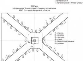 Аллея Славы располагается на территории учебного пункта Главного управления МЧС России по Калужской области по адресу: г.Калуга, ул. Байконурская, дом 9 и представляет собой площадку прямоугольной формы размером 25х30 метров, по диагоналям которой проложены 2 дорожки. По обеим сторонам дорожек установлены стенды с именами и фотографиями людей награждённых государственными наградами. В месте пересечения диагональных дорожек установлена стела высотой 5,2 метра, на которой размещены Герб МЧС России и Герб Калужской области.