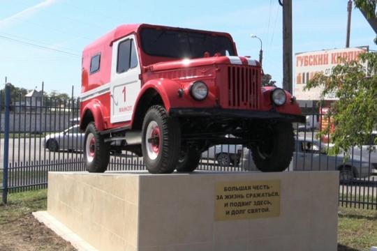 Почётное место на постаменте у здания Главного управления МЧС России по Республике Адыгея в Майкопе занял пожарный автомобиль «ГАЗ-69», с поэтичной надписью на постаменте: «Большая честь - за жизнь сражаться. И подвиг здесь, и долг святой».