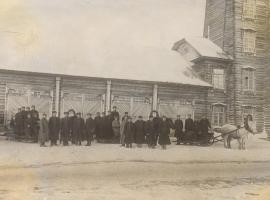 «В конце 1944 года меня родственники пригласили в Ханты-Мансийск. Мой дядя Бардин Павел Павлович был одним из первых руководителей окружного архива. Но когда я приехала, он уже ушел на фронт. Жена его, Ольга Николаевна, работала заведующей яслями имени Кирова. Она взяла меня на работу в прачечную гладить белье. Чуть позже она устроила меня на работу в пожарную часть, что стояла на улице Комсомольской. До сей поры помню, как я работала пожарником. Тогда была полувоенная дисциплина. Смену сдавали каждый раз, выстраиваясь на линейку. В то время в городе была всего одна пожарная машина, на которой работал шофером Устинов Женя. Во время пожара воду возили в бочках на лошадях. Помню, мы отличились при тушении пожара старого здания ДОСААФ и горрыбкоопа. За хорошую работу мне дали 1 метр 20 сантиметров штапеля на юбку. 9 мая, в день Победы, я стояла на посту на пожарной каланче. Начальник смены Петр Павлович Палкин мне крикнул: «Вышка, война кончилась!» У здания кинотеатра состоялся митинг. Денек был теплый, ясный. Радости не было предела: кто- то смеялся, кто- то плакал. Только закончился митинг, и пошел снег».