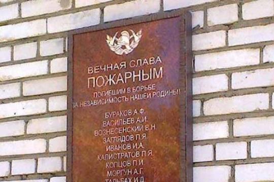 Мемориальная доска пожарным погибшим при тушении станции Тихвин 14 октября 1941.