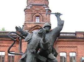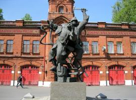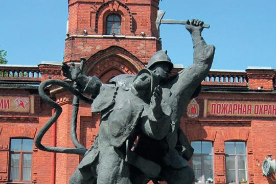Очень необычный памятник установлен в Санкт-Петербурге возле одной из пожарных частей. Эта часть, №9, расположена на Васильевском острове, на Большом проспекте, на углу с 21-й линией В.О.