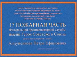 17-й пожарной части города Москвы, в которой он служил, присвоено его имя. На ней установлена мемориальная табличка.