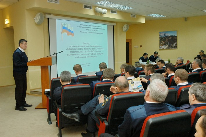 Март 2006 г., с докладом на конференции выступает начальник управления поисково-спасательных служб, поиска и спасения на воде МЧС России Салават Мингалеев.