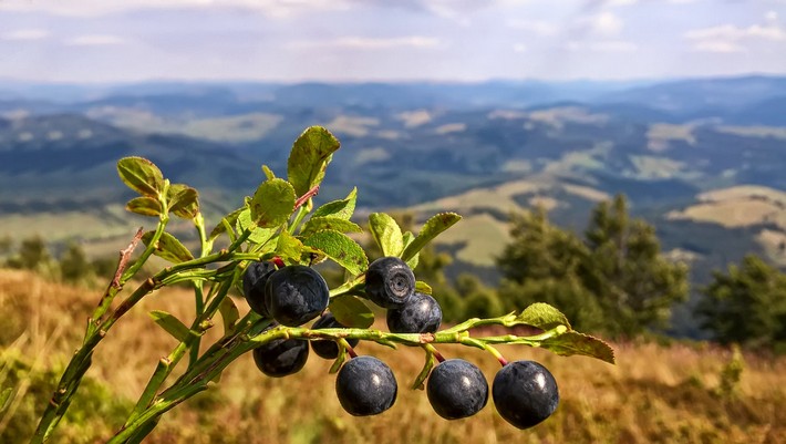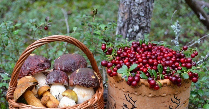 В сибирской тайге собирают лесную смородину, княженику, кисловатую водянику.