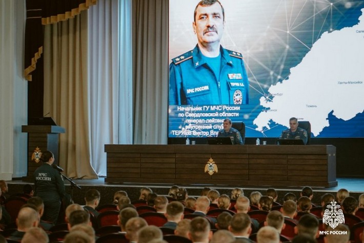 Для выпускников института занятие провел начальник Главного управления МЧС России по Свердловской области генерал-лейтенант внутренней службы Виктор Теряев, а заместители начальника института встретились с обучающимися второго и третьего курсов.