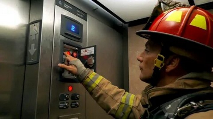 Еще пример. Мы начали проектировать лифты для пожарных. Откуда мы это взяли? Вообще, первые лифты для пожарных появились в Англии. У меня был коллега, начальник пожарной охраны Лондона, Брайан Робинсон. Мы были в Лондоне по линии Международного комитета КТИФ, где участвовали все начальники пожарной охраны, и он нам показывал высотные здания, там мы и увидели эти специальные лифты для пожарных. Правильно, и начали это внедрять у себя, но посмотрите, как мы их внедряем.