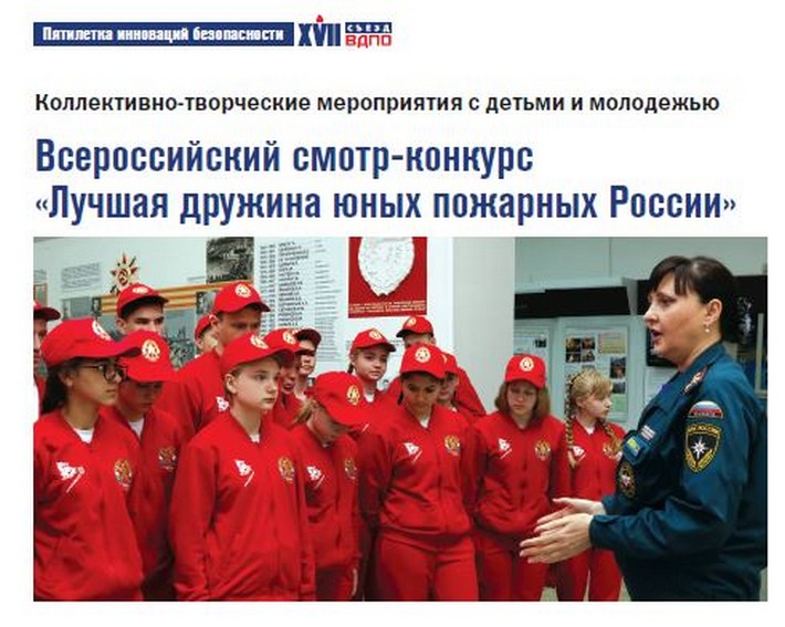 Не случайно раздел коллективно-творческих мероприятий открывается в сборнике материалом о Всероссийском смотре-конкурсе «Лучшая дружина юных пожарных России».