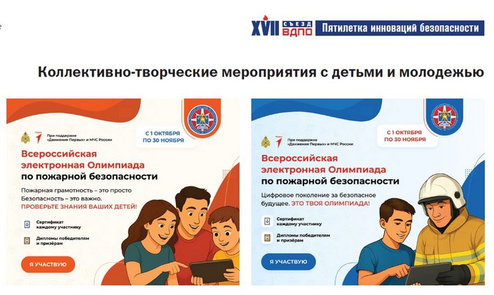 Центральное и самое массовое событие в календаре ВДПО – ежегодное всероссийское тестирование знаний по пожарной безопасности - Всероссийская электронная олимпиада по пожарной безопасности.