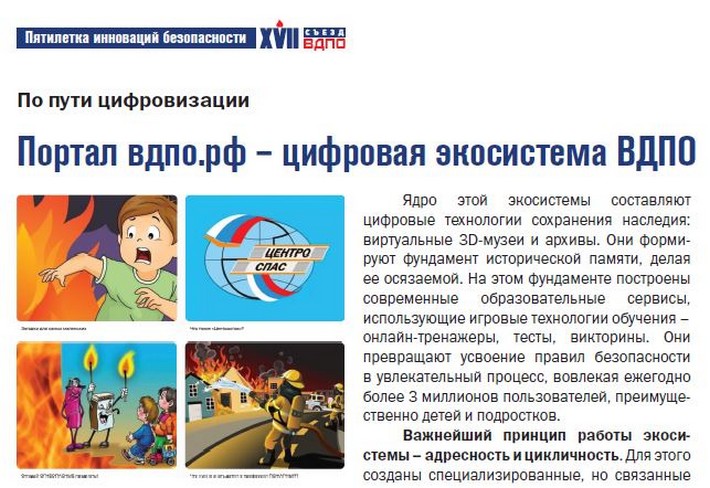 Созданная усилиями общества цифровая экосистема – это не отдельный сервис, а целостная, взаимосвязанная среда, где технологии и контент взаимодействуют, создавая синергетический эффект. Именно такую экосистему представляет собой портал вдпо.рф, реализующий наступательную информационную политику в области профилактики, превратившись в комплексную цифровую платформу. Цель ее – массовое формирование культуры пожаробезопасного поведения через современные информационные и игровые технологии обучения.