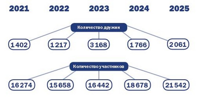 Статистика показывает, что из года в год растут ряды участников конкурса. За пятилетку и количество дружин, и количество участников выросло почти в полтора раза.