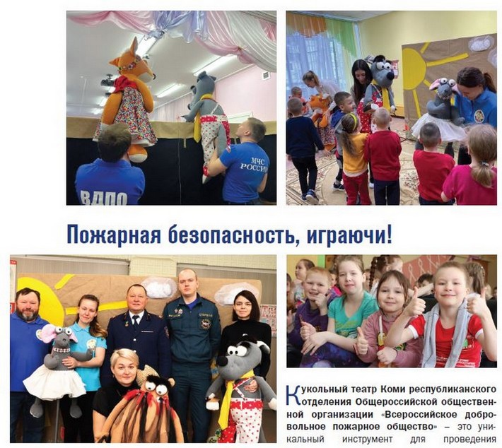 «Кукольный театр Коми республиканского отделения Общероссийской общественной организации «Всероссийское добровольное пожарное общество» – это уникальный инструмент для проведения профилактических мероприятий по пожарной безопасности среди детей самого раннего возраста. С помощью кукол, маленьким зрителям легче и интереснее усвоить важные правила!