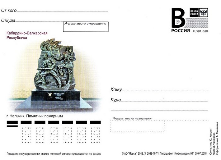 Почтовая карточка была выпущена 30 июля 2018 года, за 5 месяцев до официального открытия памятника.