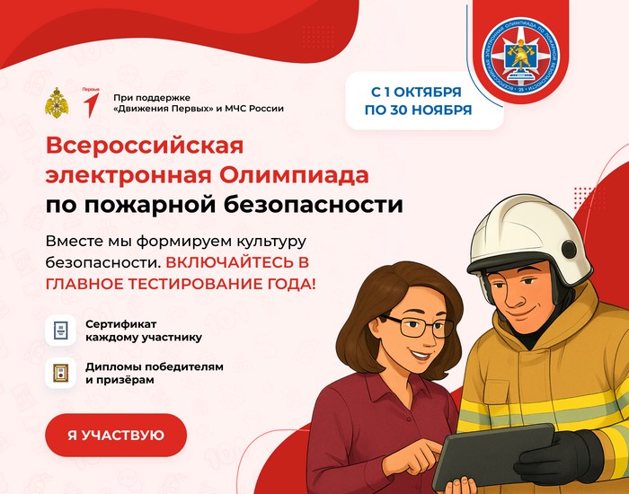 Как и в прошлые годы 1 октября 2025 года на портале стартует Всероссийская электронная олимпиада по пожарной безопасности, которая пройдёт до 30 ноября в онлайн-формате. Проверить свои знания в области пожарной безопасности, истории пожарной охраны и добровольчества в России может каждый желающий - возраст участников не ограничен!