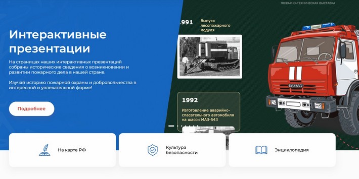 Проект «Пожарно-техническая выставка» (вдпо.рф) создан и развивается Всероссийским добровольным пожарным обществом. Размещенная на нем информация охватывает широкий спектр вопросов пожарной безопасности, истории пожарного дела и добровольчества в России, а также гражданско-патриотического воспитания молодежи и абсолютно бесплатна.
