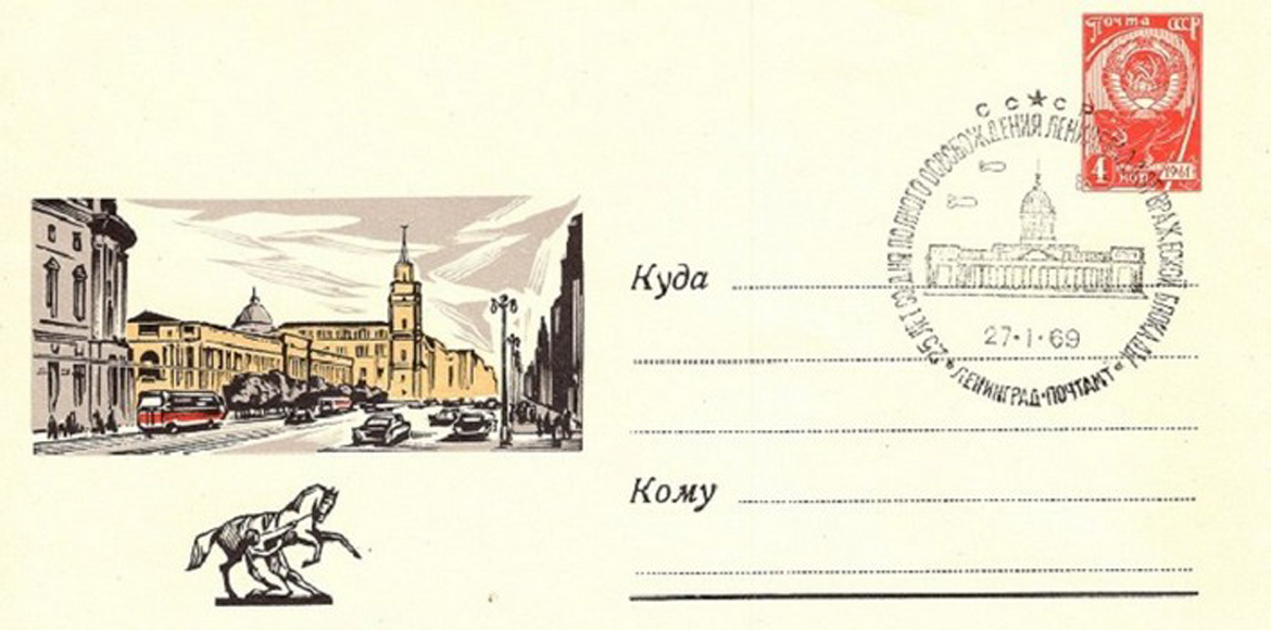 На обоих конвертах изображена Думская башня. На конверте, выпущенном в марте 1965 года, она является лишь частью рисунка Невского проспекта.