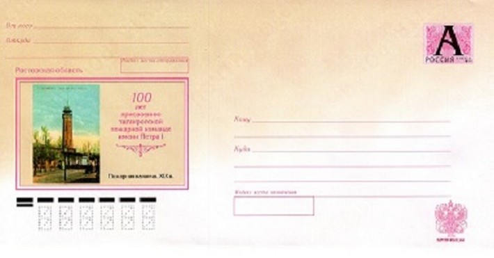В 2010 году, в честь 100-летия присвоения таганрогской пожарной команде имени Петра I, был выпущен конверт, но в качестве рисунка использована открытка XIX века. Современную башню можно увидеть на конверте 2003 года.