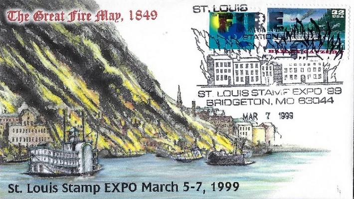 17 мая 1849 года в американском Сент-Луисе, на реке Миссисипи, загорелся колесный пароход «White cloud» («Белое облако»). Добровольная пожарная команда с девятью ручными насосами и пожарными повозками с рукавами быстро отреагировала на вызов, но быстро ликвидировать пожар не удалось. Огонь стал распространяться на стоящие рядом суда, с которых перекинулся на здания, расположенные на набережной. Остановить распространение удалось только взорвав несколько зданий, сделав тем самым противопожарный разрыв. В результате пожара погибло 3 человека. Было уничтожено 430 зданий, 23 парохода и более десятка других судов.