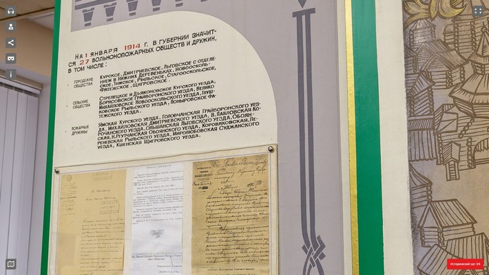 В экспозиции Пожарно-спасательного музея Курской области (виртуальный тур доступен здесь) представлена информация о вольных пожарных обществах губернии по состоянию на 1 января 1914 года. Найдите последнее в перечислении городское пожарное общество. В ответе укажите номер действующей пожарной части в этом городе.