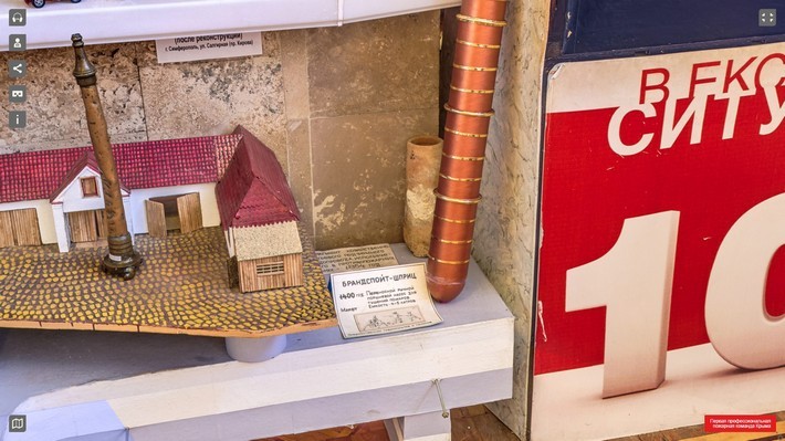 В экспозиции музея пожарно-спасательных сил Крыма (виртуальный тур доступен здесь) есть объект, который относится к году рождения отца девушки на фотографии. Сколько букв «а» в информационной табличке к загаданному объекту?