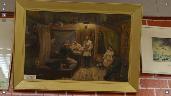 На картине изображена Т.П. Карсавина, отец которой родился в 1854 году. В экспозиции музея представлен фрагмент водопровода, в информационной табличке к которому 3 буквы «а».
