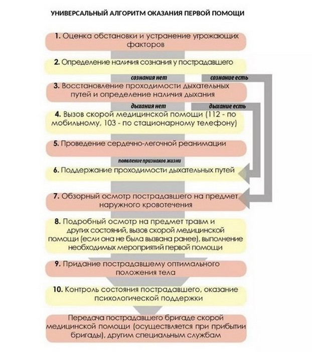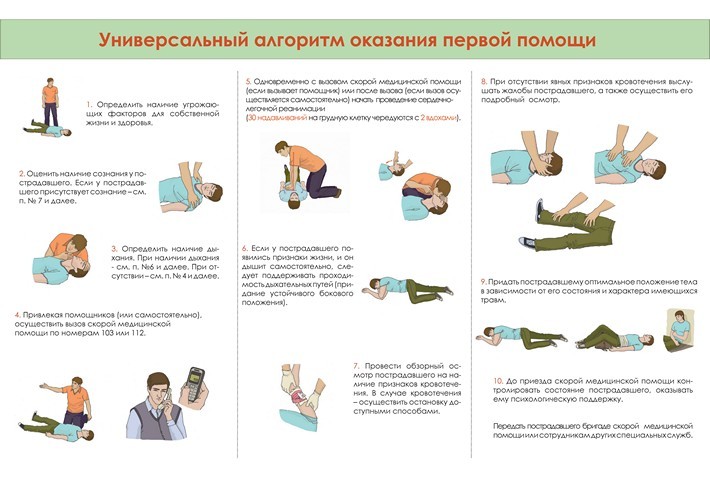 Если вы стали свидетелем или участником происшествия, в результате которого есть пострадавшие, то согласно Универсальному алгоритму первой помощи, необходимо выполнить следующие действия: провести оценку обстановки и обеспечить безопасные условия для оказания первой помощи; определить наличие сознания у пострадавшего.