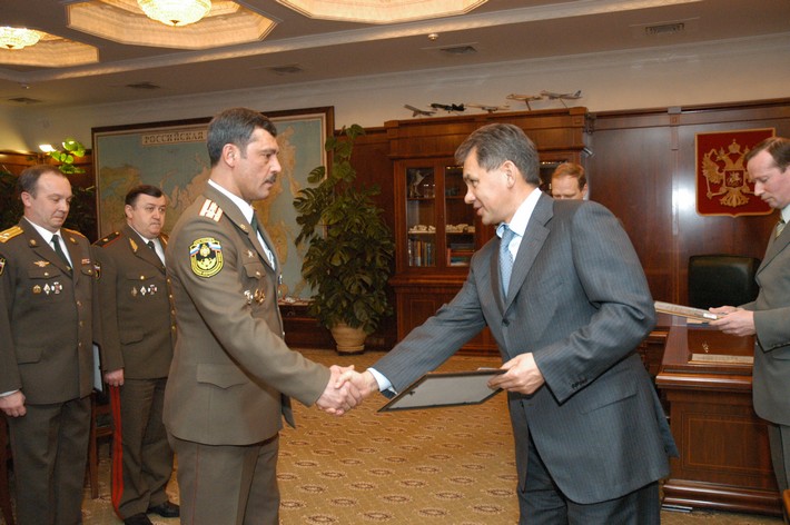 Наша очередная встреча с Виктором Ивановичем состоялась …в кабинета министра на улице Театральной в Москве 24 февраля 2005 года. Сергей Кужугетович Шойгу выполнял поручение Президента – вручал генеральские погоны, согласно Указа руководителя государства был в той команде и Виктор Климкин.