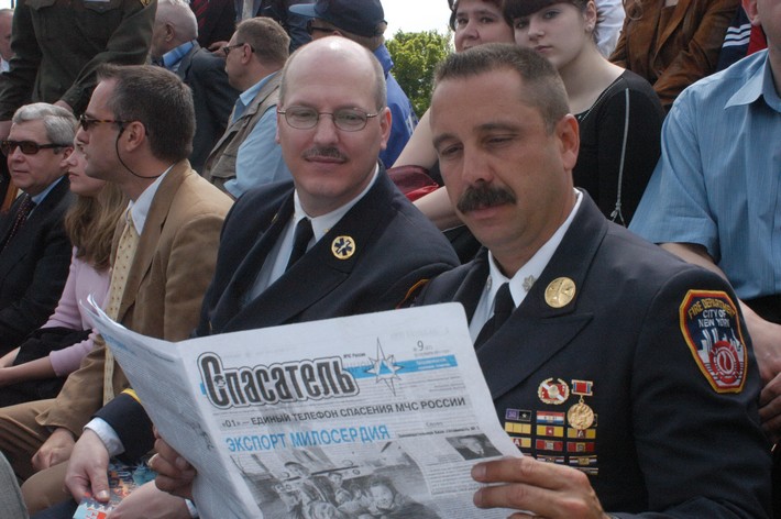 Вторым не менее важным и интересным для нас журналистов ведомственных СМИ стало знакомство с заместителем начальника пожарной охраны города Нью-Йорка Джозефом Пфейфером, которое организовал нам Виктор Иванович. Перед нами предстали сразу два участника тушения уникальных пожаров мирового уровня – Останкинской телебашни в 2000-м году в Москве и Башен Близнецов в Нью-Йорке в 2001-м…
