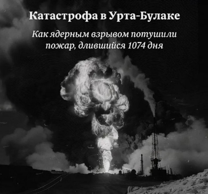 В СССР также проводились мирные ядерные испытания, всего их было 156. Их использовали для ускорения добычи природных ресурсов, создания подземных хранилищ газа и опасных отходов, рытья каналов и тушения пожаров на месторождениях. Один из таких случаев произошел в 1963 году на месторождении Урта-Булак в Узбекистане. Буровики пробили подземный газовый пузырь с невероятным давлением в 300 атмосфер. Мощная струя газа отбросила оборудование скважины, вспыхнув 70-метровым факелом. В течение трех лет этот пожар сжигал столько газа, сколько сегодня потребляет Санкт-Петербург, и его не удавалось потушить. Ученые создали специальный заряд, чтобы перекрыть ствол скважины. В результате взрыва мощностью 30 килотонн, что эквивалентно «полутора Хиросимам», пожар был потушен.