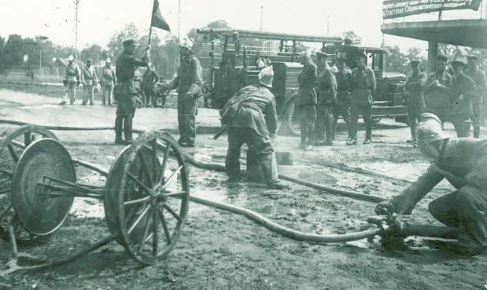 Осенью 1937 года в Московской спортивной газете опубликовали корреспонденцию о первых Всесоюзных соревнованиях пожарной охраны НКВД СССР. В статье описывались соревнования, в которых наряду с гимнастикой, лёгкой атлетикой, баскетболом и футболом были включены пожарно-прикладные упражнения.