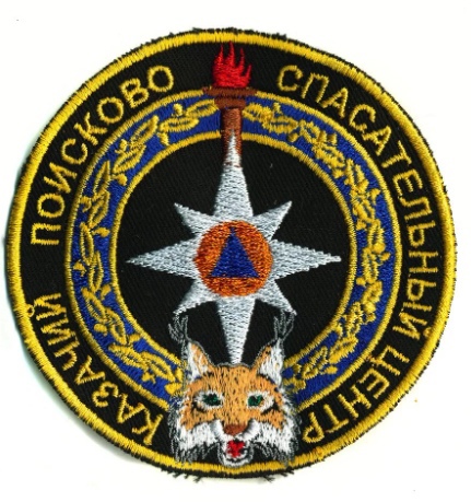 Нашивка выполнена в форме щита с жёлтой окантовкой. В центре изображена голова рыси с зелёными глазами и красным языком, перекрещенная двумя белыми саблями. В верхней части нашивки расположен флаг России. По периметру щита на синем фоне золотыми буквами вышита надпись "КАЗАЧИЙ ПСЦ ТОМСКОВО СПАСАТЕЛЬНЫЙ ЦЕНТР". Материал нашивки - текстиль, вышивка выполнена нитками.