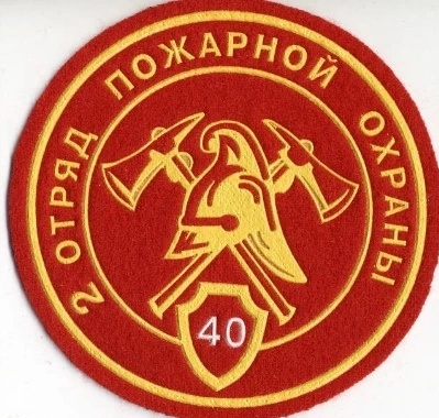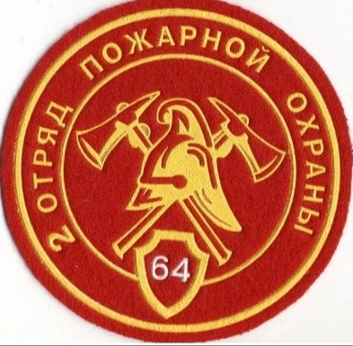 Нашивка "2 отряд Пожарной охраны" выполнена в красном и золотом цветах. В центре изображены два скрещенных топора, символизирующие пожарную службу, и шлем, что также является традиционным символом пожарных. Под топорами и шлемом расположен щит с номером "44". Вокруг центрального изображения идет надпись "2 отряд Пожарной охраны" на русском языке. Нашивка имеет круглую форму и выполнена из ткани, с вышитыми деталями, что придает ей прочность и долговечность. Основной цвет нашивки - красный, а элементы изображения и надписи выполнены золотой нитью, что создает контраст и делает изображение более заметным.
