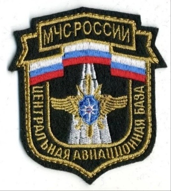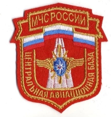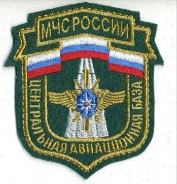 Нашивка представляет собой эмблему Центральной авиабазы МЧС России. Она выполнена в форме щита с золотой окантовкой. В верхней части нашивки изображены две российские флаги, расположенные горизонтально. В центре нашивки изображена стилизованная ракета или ракетная установка, выполненная в белом и золотом цветах. Над ракетой расположен золотой орёл с распростёртыми крыльями, держащий в когтях синий щит с красной звездой. Вокруг центрального изображения на золотом фоне вышиты надписи: в верхней части - "МЧС РОССИИ", в нижней части - "ЦЕНТРАЛЬНАЯ АВИАЦИОННАЯ БАЗА". Основные цвета нашивки - синий, золотой, белый, красный и синий. Материал нашивки - вышивка на тканевой основе.