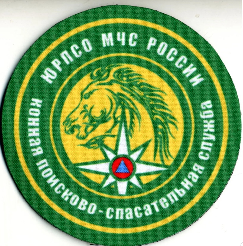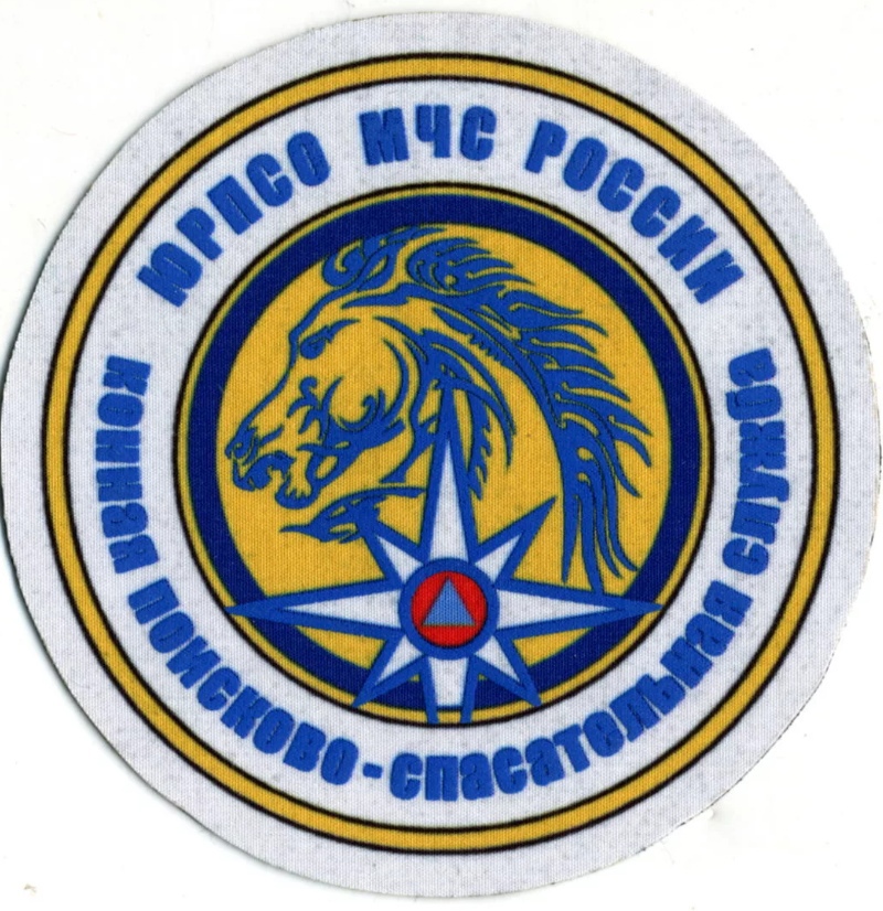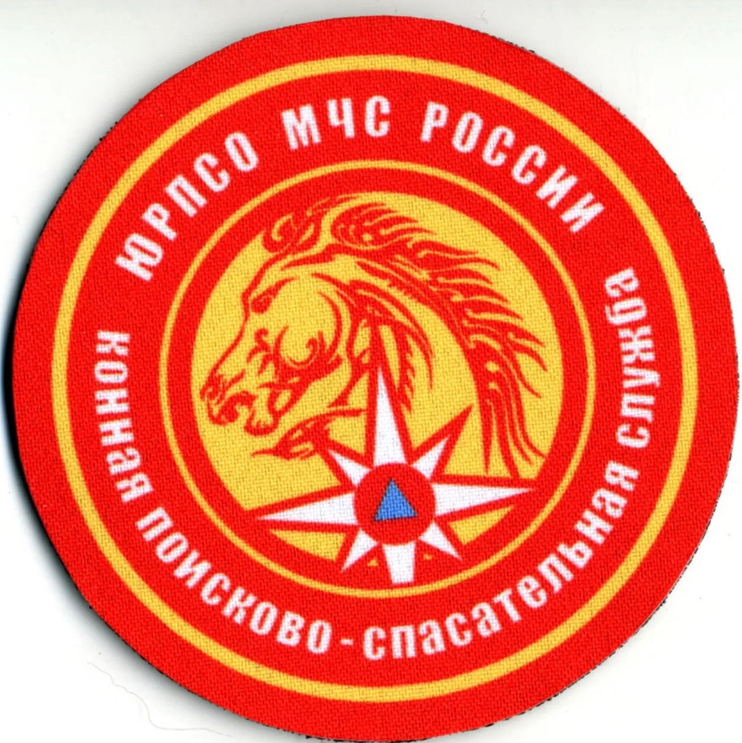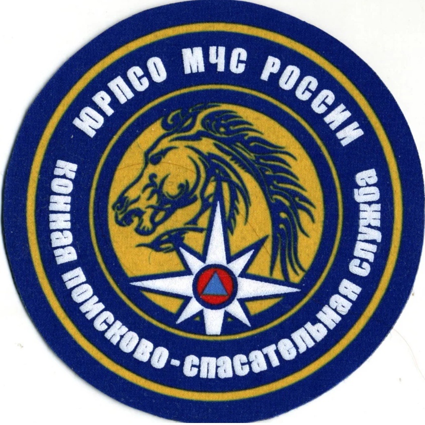 Нашивка "ЮРПСО Конная ПСС" представляет собой круглый значок с черной окантовкой. В центре изображена голова лошади, выполненная в черном цвете на желтом фоне. Под головой лошади расположена белая восьмиконечная звезда с красным кругом в центре, внутри которого находится синий треугольник. Вокруг центрального изображения идет надпись на русском языке: "ЮРПСО МЧС РОССИИ Конная Пожарно-спасательная служба". Нашивка выполнена из ткани и предназначена для ношения на форменной одежде сотрудников пожарно-спасательной службы, использующих лошадей в своей работе.