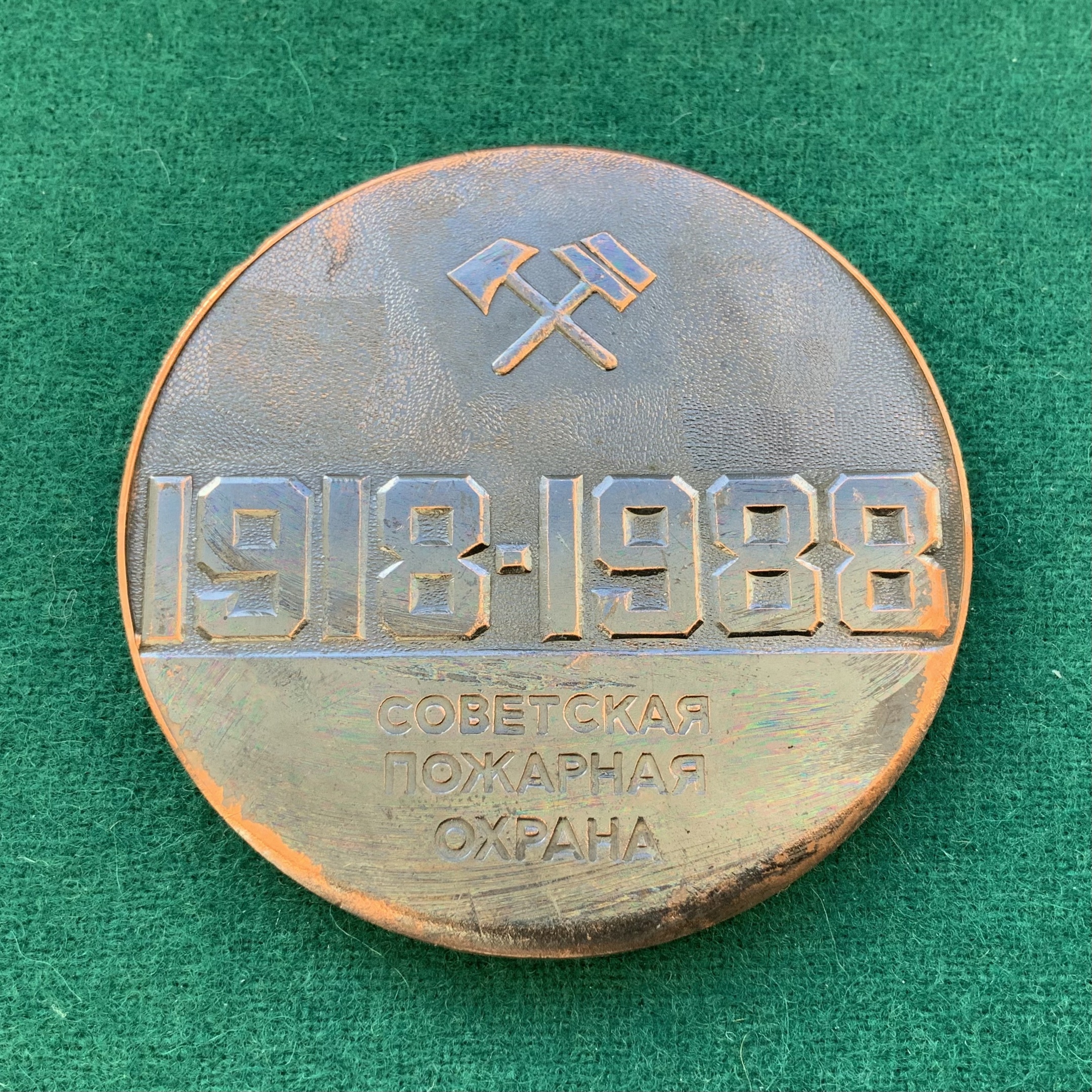 Настольная медаль "70 лет Советской пожарной охране"