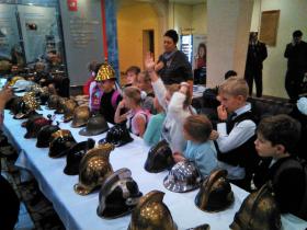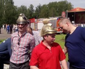 пожарные каски из коллекции Дениса фон Мекка на общественных мероприятиях, выставках, праздниках, днях города