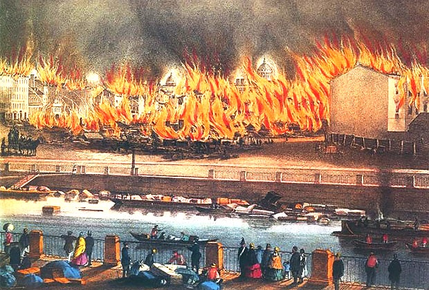 Самый ужасный пожар начался 28 мая 1862 года на Толкучем рынке у Апраксина двора «и в час, не более, времени вся местность, занятая лавками, была залита огнем». Пожар грозил уничтожить всю центральную часть города.
