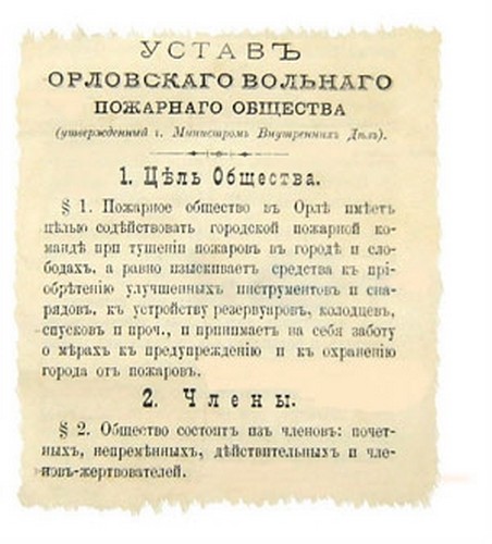29 июня 1888 года создано Орловского Вольного пожарного общества. Сегодня продолжателем его традиций является Орловское областное отделение Общероссийской общественной организации «Всероссийское добровольное пожарное общество».