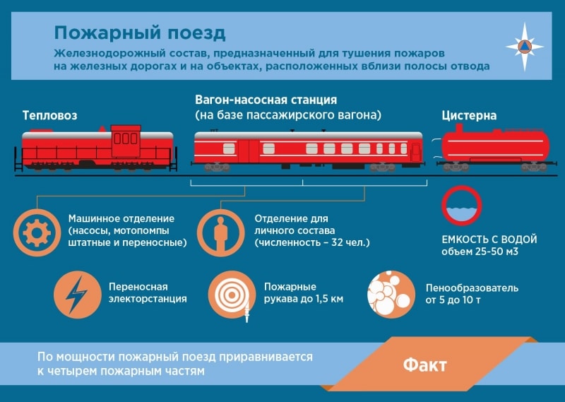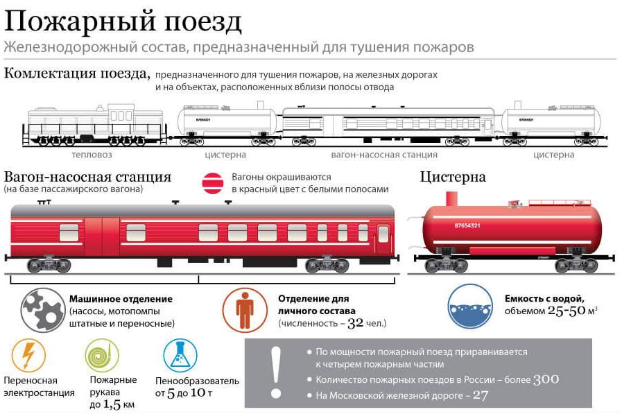 Сейчас пожарные поезда отнесены к силам и средствам функциональной подсистемы предупреждения и ликвидации чрезвычайных ситуаций на ж/д транспорте. Каждый поезд имеет свой район обслуживания. Этот район определяется приказом вышестоящего руководства региона или отделения РЖД. Самое главное, что эксплуатация пожарных поездов не зависит от ведомственной принадлежности. То есть эту технику постоянно используют для тушения различных объектов, не входящих в состав РЖД. Статистика же уверяет, что пожарные поезда все чаще становятся основной силой в тушении больших пожаров.