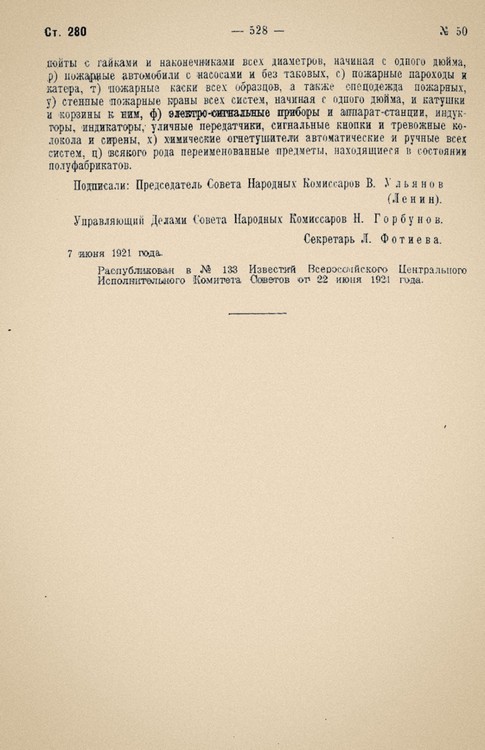 Декрет СНК РСФСР от 07.06.1921 «Об учете пожарного имущества в республике».