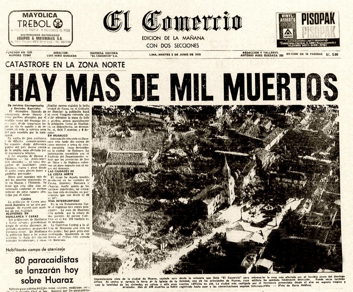 В 1970 году произошло Великое Перуанское землетрясение, которое было оценено в 8 баллов по шкале Рихтера, стало причиной смерти 75 тысяч человек в Юнгае и за пределами, а также нанесло финансовый урон в размере полумиллиарда долларов.
