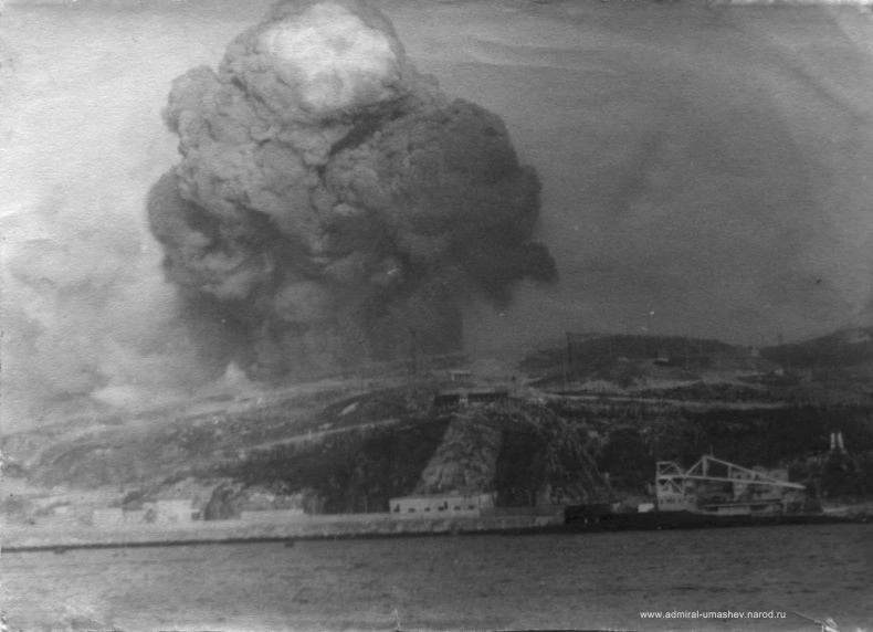 К счастью (это счастье обеспечили пожарные Мурманска), не произошло самого страшного - детонации ядерных зарядов, хранившихся на этой же базе, однако над городом поднялся гриб (такой же, как при атомном взрыве), а в небо взлетели неуправляемые ракеты. Западные спутники регистрировали «необычные атмосферные явления».