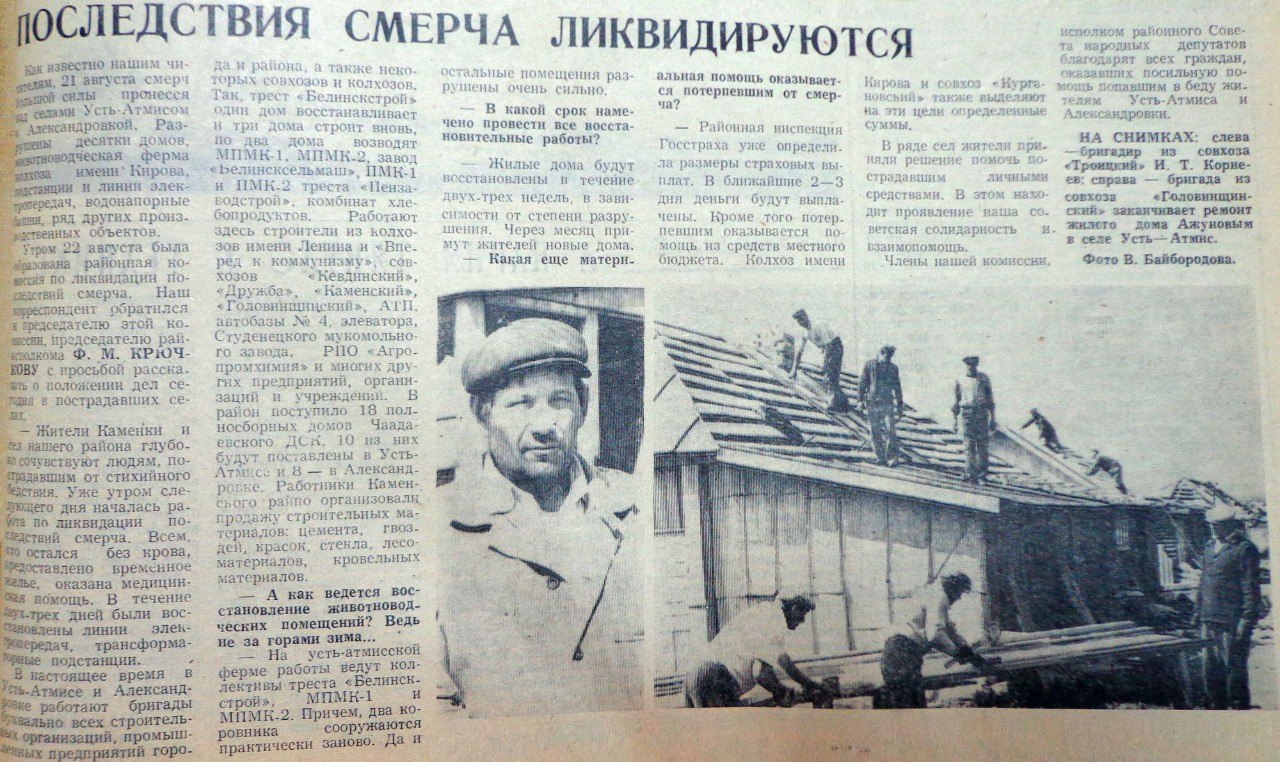 После разгула стихии в городе начались массовые общественные работы. Благодаря сплоченной работе жителей инфраструктура города и его окрестностей была быстро восстановлена.