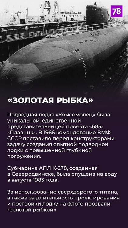 К-278 была спущена на воду в 1983 году. Её корпус из титанового сплава обеспечивал невероятную прочность и позволял погружаться на глубину до 1000 метров, что делало её практически недосягаемой для противолодочных средств. В 1985 году лодка установила мировой рекорд, погрузившись на глубину 1027 метров. На борту находились торпеды и крылатые ракеты, включая ядерное вооружение.