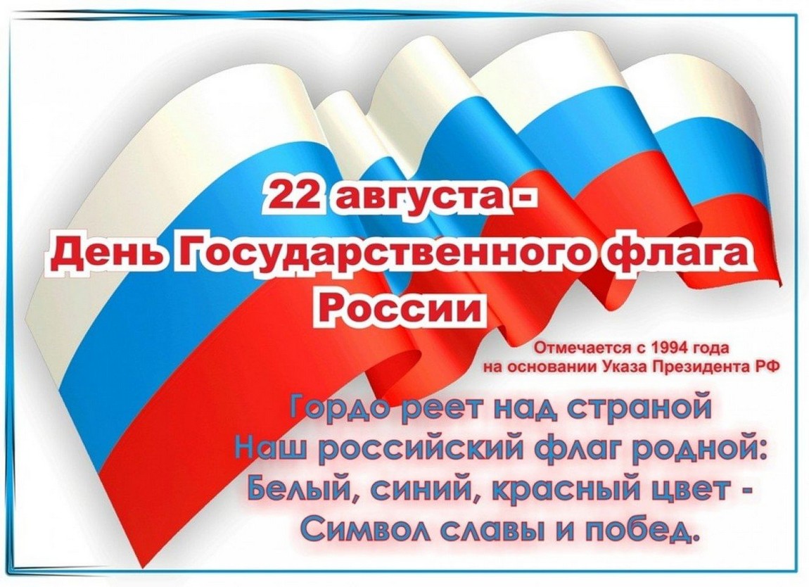 22 августа в России отмечается День Государственного флага Российской Федерации, установленный на основании указа президента РФ от 20 августа 1994 года «О Дне Государственного флага Российской Федерации».