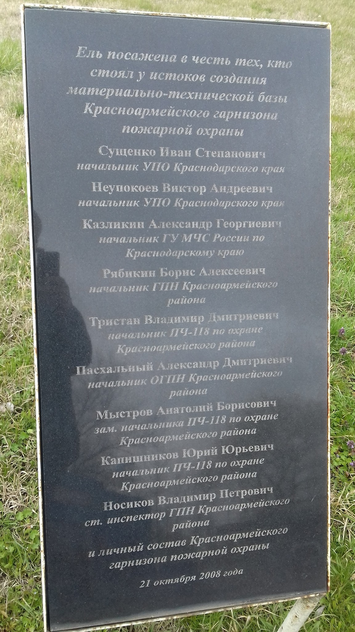 21 октября 2008 года открылась «Памятная ель и памятная плита», 118-ПСЧ по охране ст. Полтавской ФГКУ «15 отряд ФПС по Краснодарскому краю».