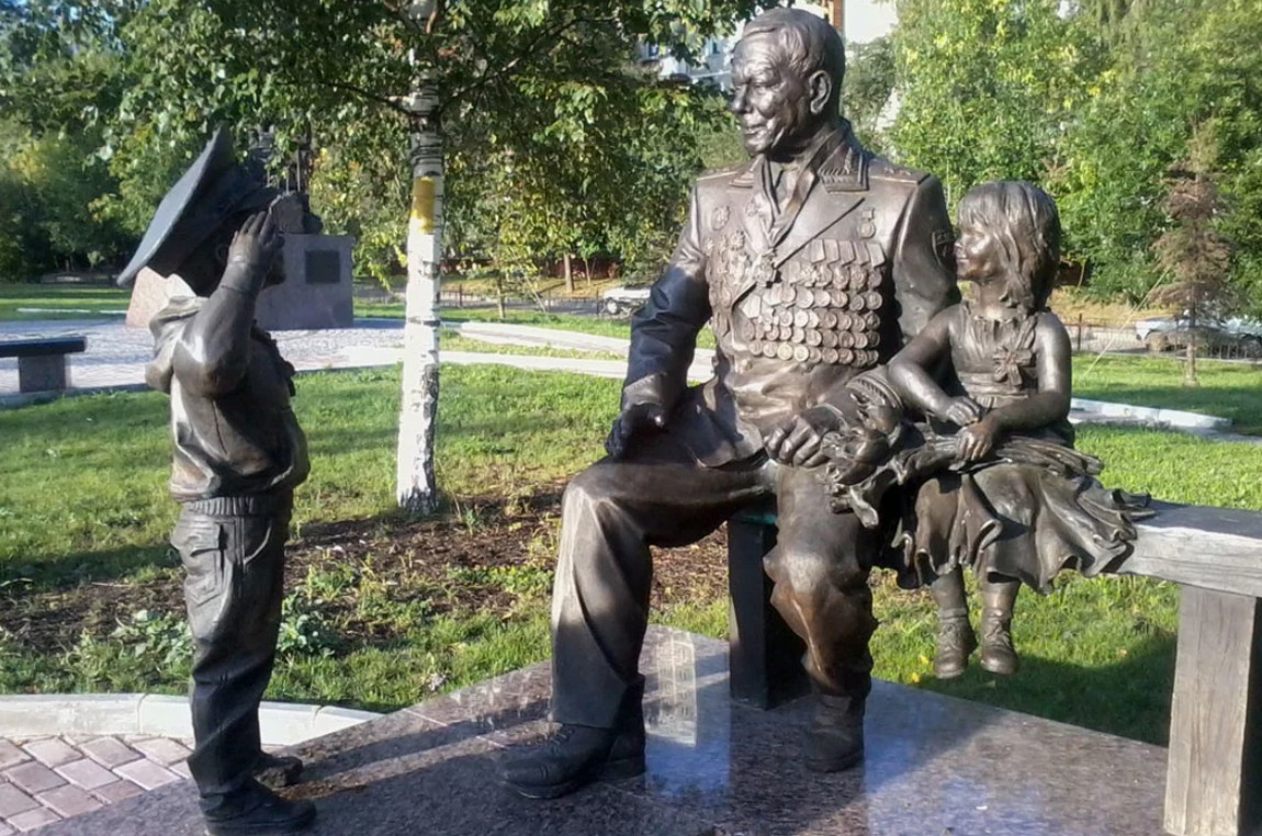 Памятник входит в комплекс монумента пожарным и спасателям, открытый к 20-летию МЧС России в декабре 2010 г. Автор памятника – заслуженный художник России, член-корреспондент Российской академии художеств Салават Щербаков. Прообразом изображенного в металле ветерана стал председатель Центрального совета ветеранов МЧС России генерал-лейтенант в отставке Д.И. Михайлик – подлинный герой Великой Отечественной войны.