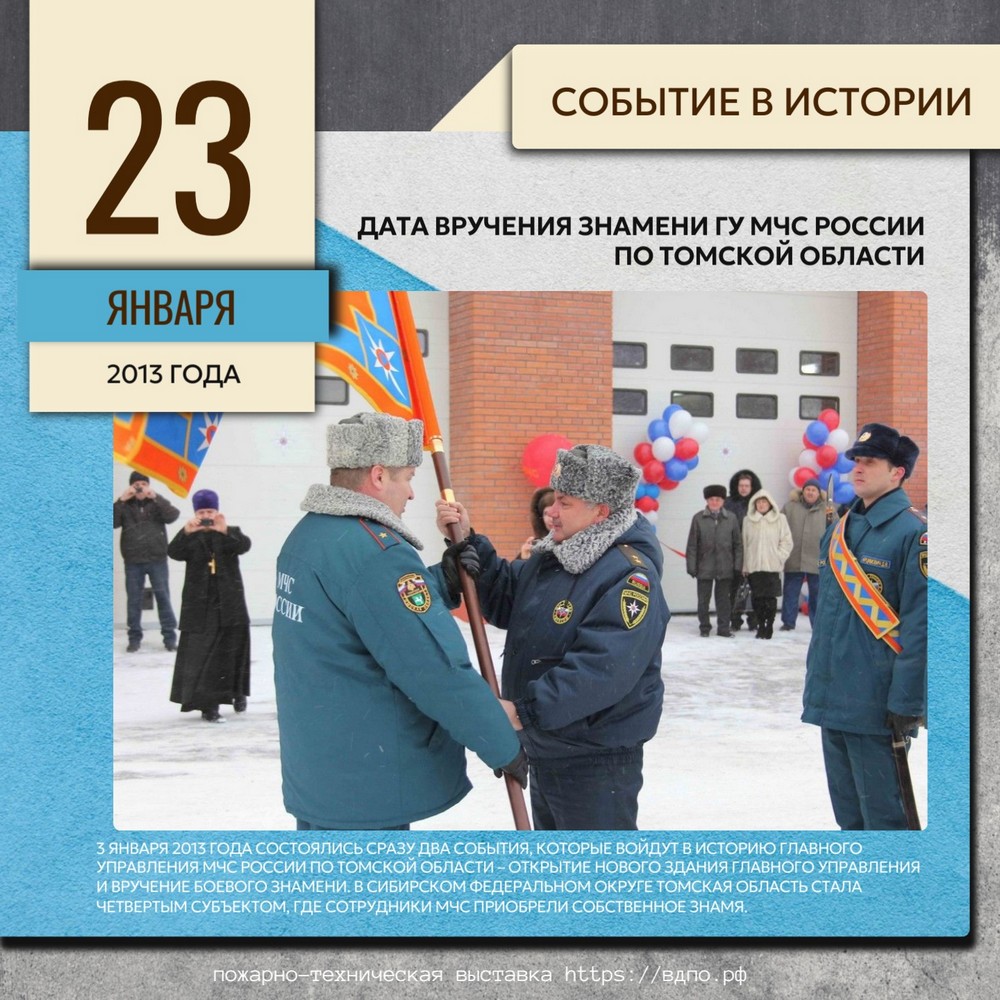 23 января 2013 года состоялись сразу два события, которые войдут в историю Главного управления МЧС России по Томской области – открытие нового здания Главного управления и вручение боевого Знамени. В Сибирском федеральном округе Томская область стала четвертым субъектом, где сотрудники МЧС приобрели собственное знамя.